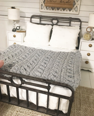 Miniature Dollhouse 1:12 Scale | Miniature Crocheted Bed Blanket Grey