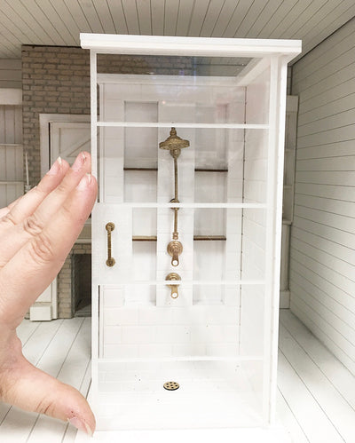 Miniature Dollhouse 1:12 Scale | Miniature Farmhouse Single White Shower White & Gold