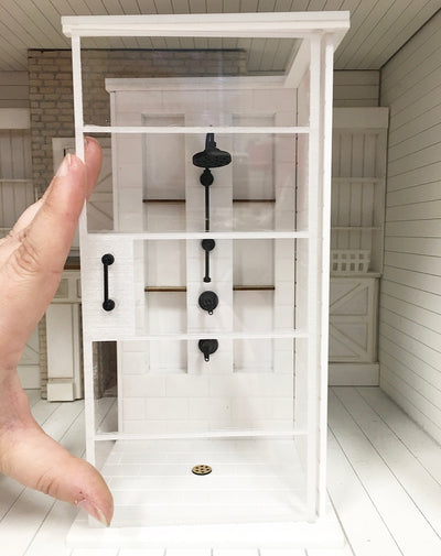 Miniature Dollhouse 1:12 Scale | Miniature Farmhouse Single White Shower White & Black