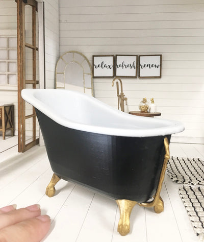 1:12 Scale | Miniature farmhouse bathtub &  Faucet | black with Gold Faucet