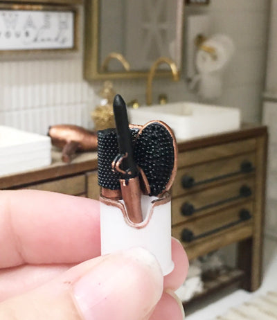1:12 Scale | Miniature Farmhouse Rose Gold Hair Brushes & Curling Iron Set