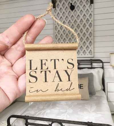 Miniature Dollhouse 1:12 Scale | Miniature Farmhouse Scroll Sign Lets Stay In Bed