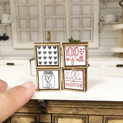 Miniature Dollhouse 1:12 Scale | Farmhouse Set of 4 Mini Valentines Signs