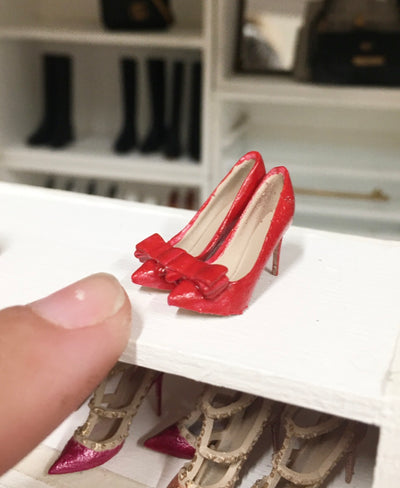 Miniature Dollhouse 1:12 Scale | Miniature Farmhouse Shoes Bow Pumps red