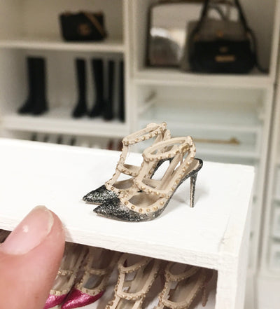 1:12 Scale | Miniature Farmhouse Shoes Valentino Rockstar Pumps Black Sparkle