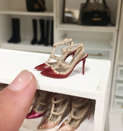 Miniature Dollhouse 1:12 Scale | Miniature Farmhouse Shoes Valentino Rockstar Pumps dark red