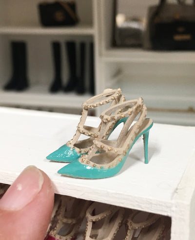 1:12 Scale | Miniature Farmhouse Shoes Valentino Rockstar Pumps Teal