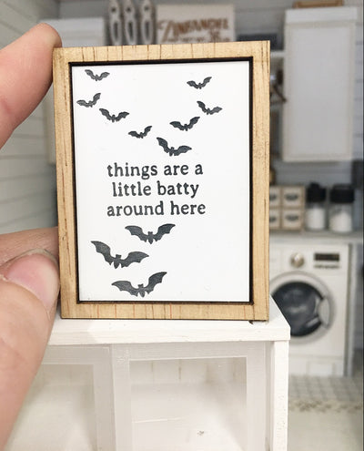 Miniature Dollhouse 1:12 Scale | Farmhouse Sign Halloween Black and white things are a bit batty around here