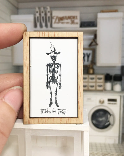 Miniature Dollhouse 1:12 Scale | Farmhouse Sign Halloween Black and white tricks for treats skeleton
