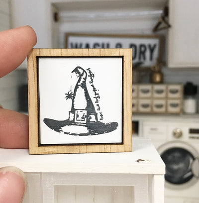 Miniature Dollhouse 1:12 Scale | Farmhouse Sign Halloween Black and white witches hat