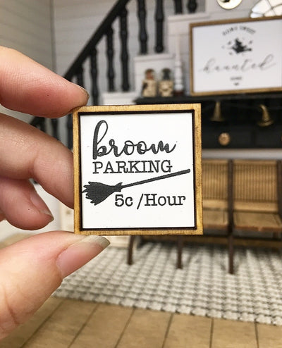 Miniature Dollhouse 1:12 Scale | Farmhouse Sign Broom Parking