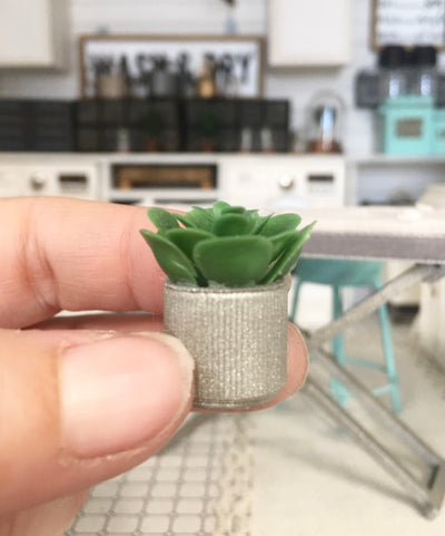 Miniature Dollhouse 1:12 Scale | Farmhouse Stripe Small Silver Leaf Cactus Plant