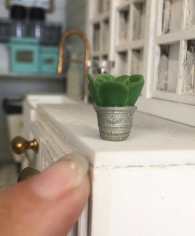 1:12 Scale | Miniature Farmhouse Tiny Silver Embossed Cactus Plant