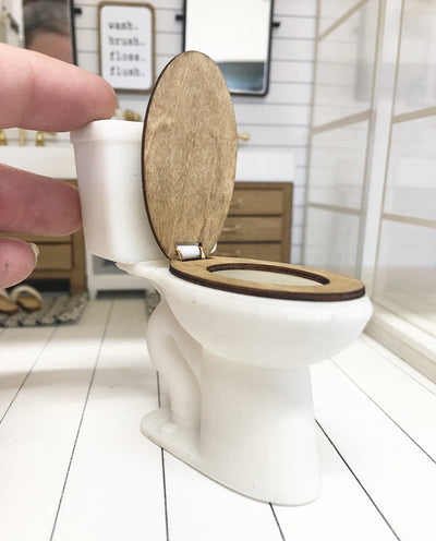 Miniature Dollhouse 1:12 Scale | Miniature Farmhouse Toilet White with wooden seat