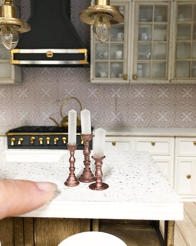 1:12 Scale | Miniature Farmhouse Trio Candlesticks Copper