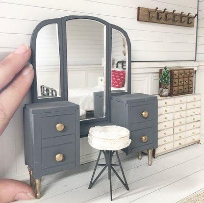 Miniature Dollhouse 1:12 Scale | Farmhouse Vanity Table & Stool | Charcoal Grey