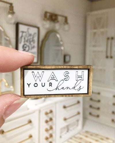 Miniature Dollhouse 1:12 Scale | Miniature Farmhouse Wash Your Hands White Sign