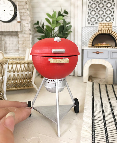 Miniature Dollhouse 1:12 Scale | Farmhouse Webber Kettle Barbecue Red