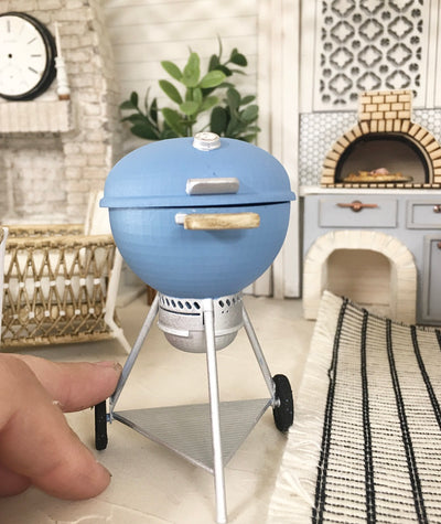 Miniature Dollhouse 1:12 Scale | Farmhouse Webber Kettle Barbecue Vintage Blue