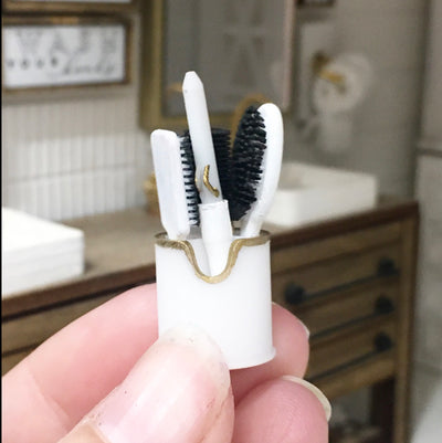 1:12 Scale | Miniature Farmhouse White Hair Brushes & Curling Iron Set