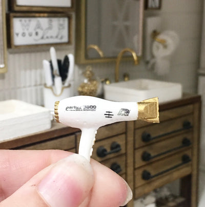 Miniature Dollhouse 1:12 Scale | Miniature Farmhouse White Hairdryer