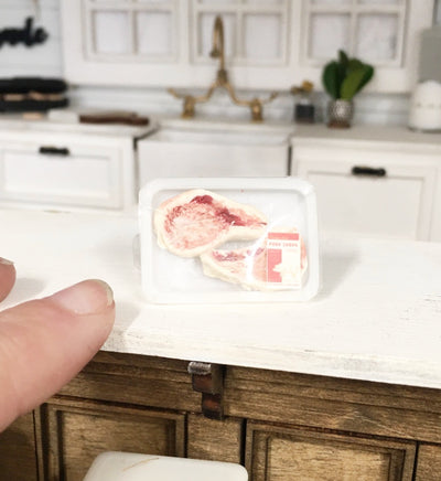 Miniature Dollhouse 1:12 Scale | Farmhouse Wrapped Meat on Tray Pork Chops