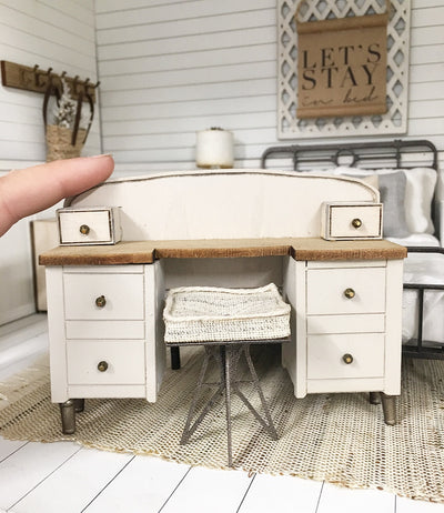 Miniature Dollhouse 1:12 Scale | Miniature French Linen Vanity Table & Stool