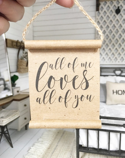 Miniature Dollhouse 1:12 Scale | Miniature Farmhouse Scroll Sign All Of Me Loves All Of You