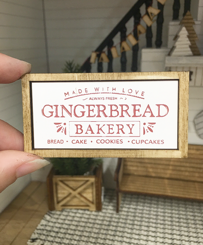 Miniature Dollhouse 1:12 Scale | Miniature Sign Gingerbread Bakery Red