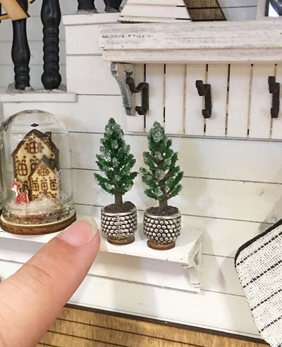 Miniature Dollhouse 1:12 Scale | Miniature Farmhouse Mini Christmas Trees Pair 2