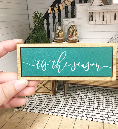 Miniature Dollhouse 1:12 Scale | Miniature Farmhouse Sign Tis The Season Green