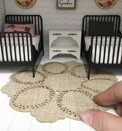 Miniature Dollhouse 1:12 Scale | Farmhouse Jute flower rug
