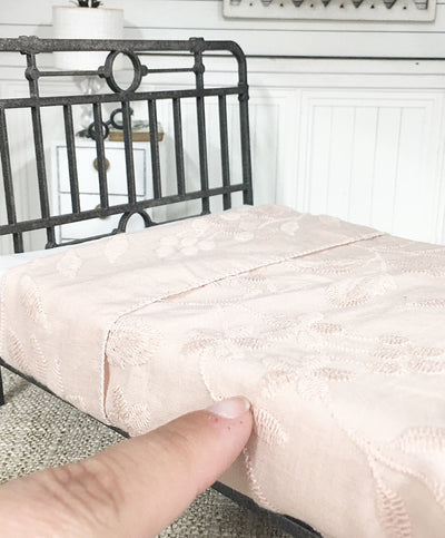 Miniature 1:12 | Farmhouse bed linen & Sheet Dusty Pink Flowers
