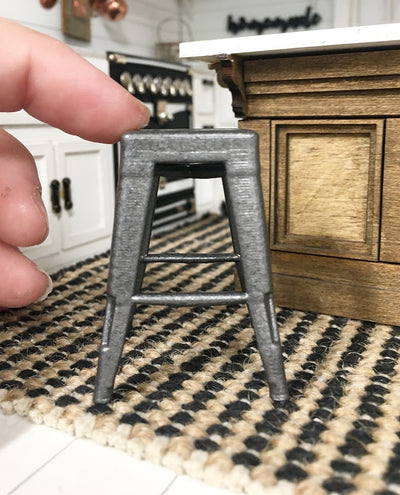 Miniature Dollhouse 1:12 Scale | Miniature Farmhouse Industrial Stool Dark Metal