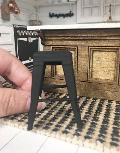 Miniature Dollhouse 1:12 Scale | Miniature Farmhouse Industrial Stool Matte Black