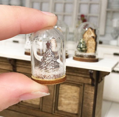 Miniature Dollhouse 1:12 Scale | Miniature Farmhouse glass snow dome silver Christmas tree