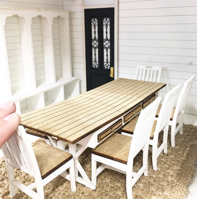 Miniature Dollhouse 1:12 Scale | Farmhouse Extendable White & Wood Table