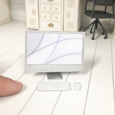 Miniature Dollhouse 1:12 Scale | Office Mac Computer Silver