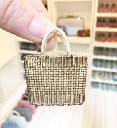 Miniature Dollhouse 1:12 Scale | Miniature Farmhouse Rattan Handbag Brown