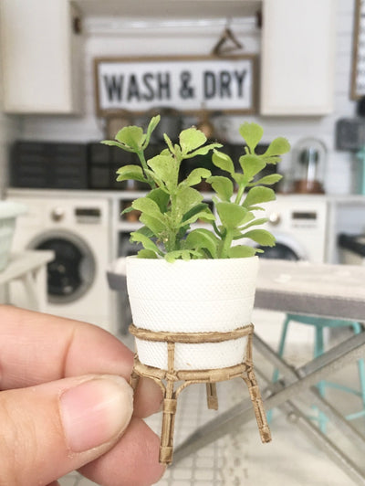 Miniature Dollhouse 1:12 Scale | Farmhouse plant pot with legs wood bunch plant
